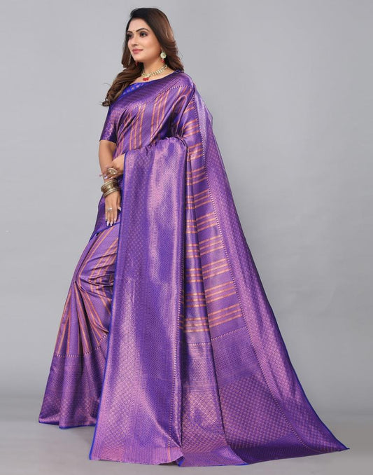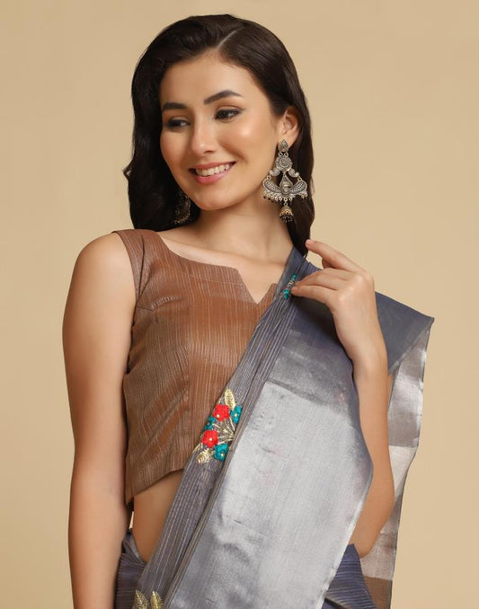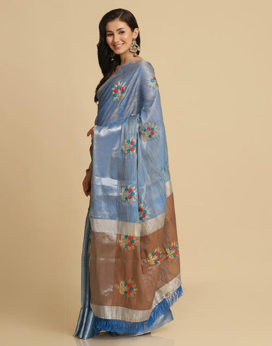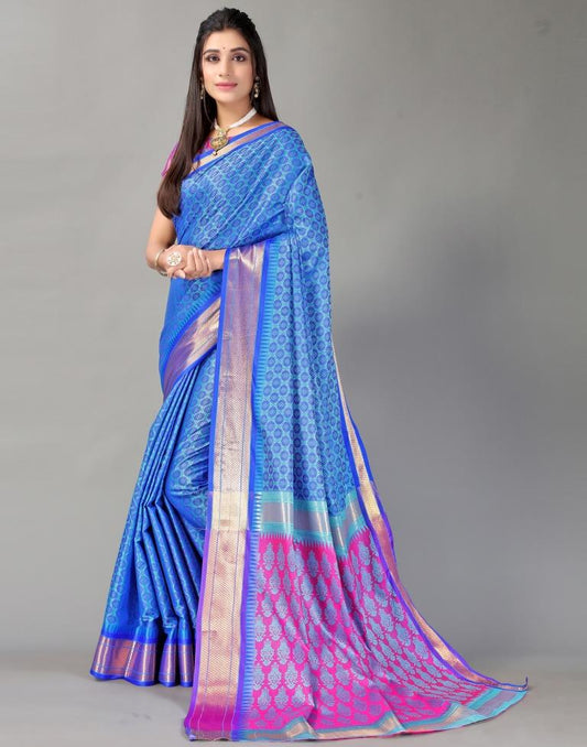 Blue Silk Self Woven Banarasi Saree With Tassel