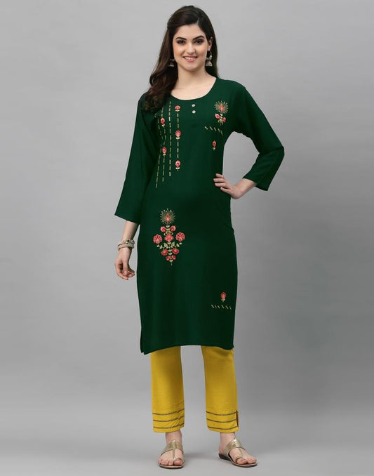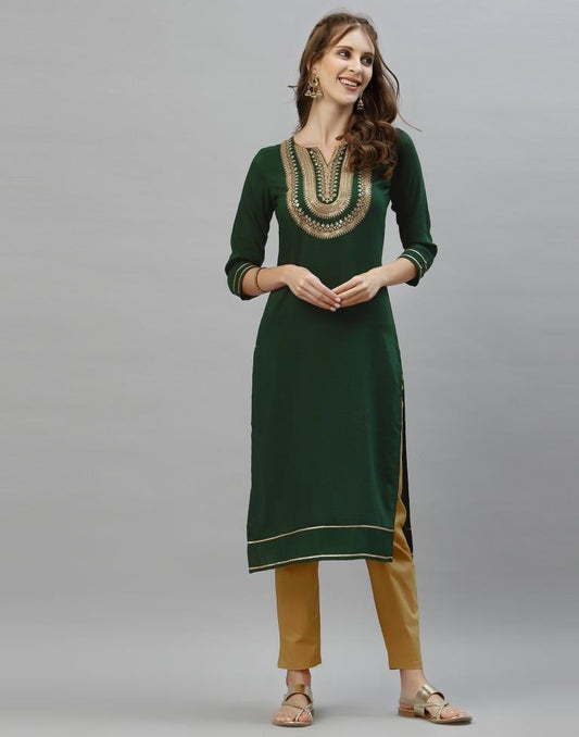 Regular price From Rs. 549.00Regular priceUnit price / perRs. 0.00Sale price From Rs. 549.00Bottle Green Embroidered Kurti