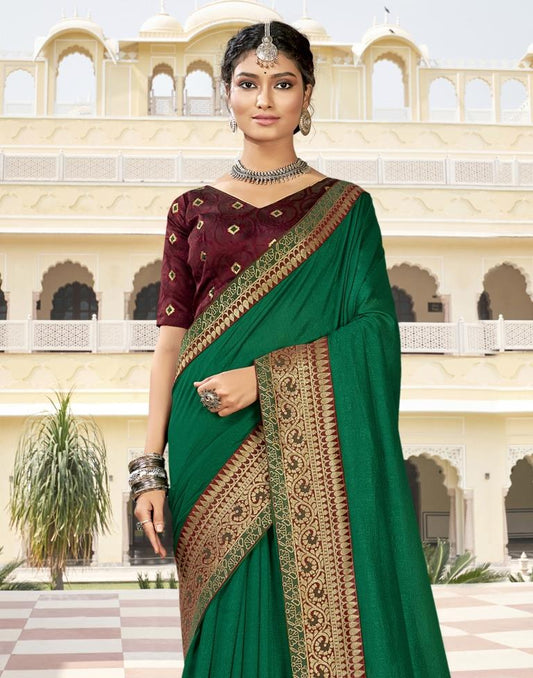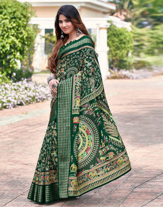 Bottle Green Silk Woven Straight Kurta Set With Dupatta