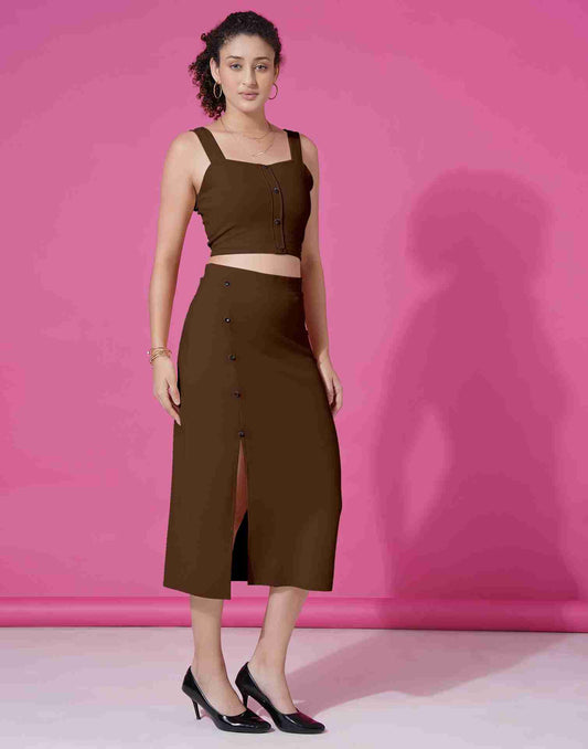 Regular price Rs. 749.00Regular priceUnit price / perRs. 0.00Sale price Rs. 749.00Brown Lycra Plain Co-ord Set