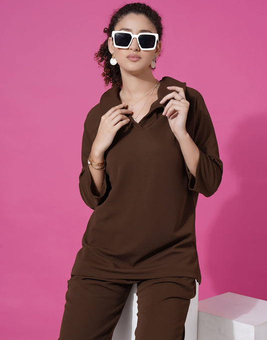Regular price Rs. 759.00Regular priceUnit price / perRs. 0.00Sale price Rs. 759.00Brown Lycra Plain Co-ord Set