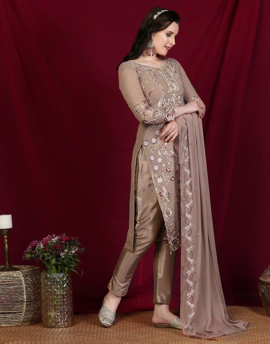 Brown Plain Georgette Unstitched Salwar Suit Material