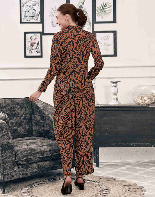 Regular price Rs. 779.00Regular priceUnit price / perRs. 0.00Sale price Rs. 779.00Brown Polyester Printed Co-ord Set