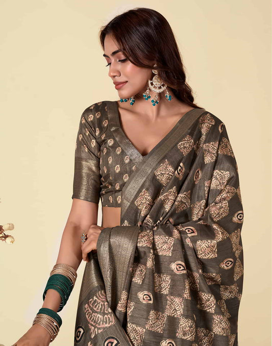 Brown Silk Printed Saree