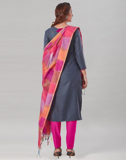 Classic Slate Grey Cotton Embriodery Unstitched Salwar Suit