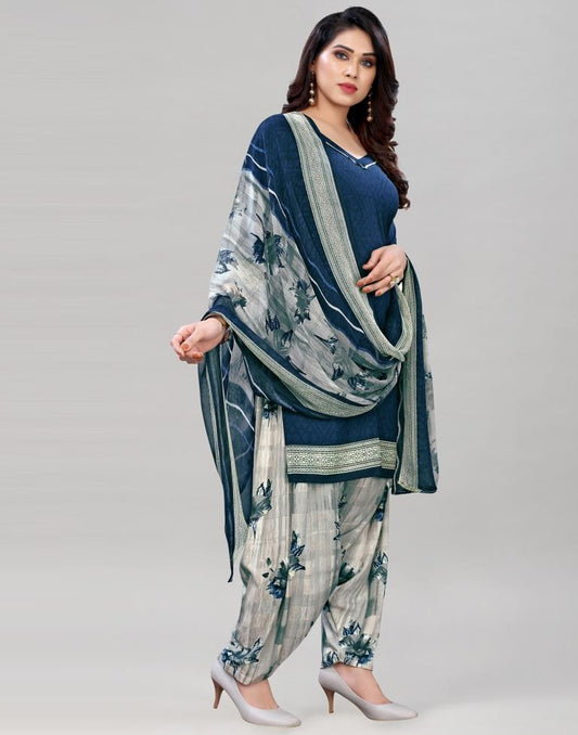 Classic Navy Blue Printed Unstitched Salwar Suit