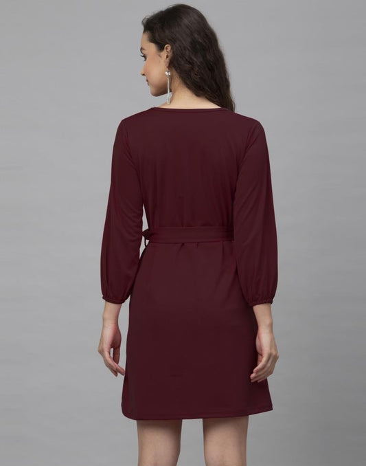Classic Maroon Coloured Knitted Lycra Dress