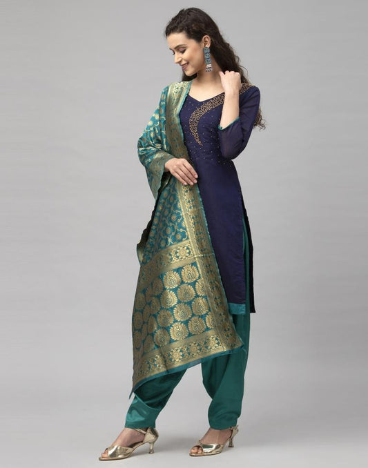 Contemporary Navy Blue Coloured Poly Silk Jacquard Banarasi Dupatta