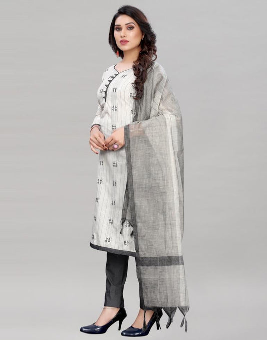 Classy White Cotton Self Woven Unstitched Salwar Suit