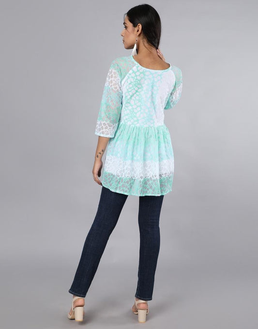 Regular price Rs. 329.00Regular priceUnit price / perRs. 0.00Sale price Rs. 329.00Classy Turquoise Coloured Printed Crepe Tops
