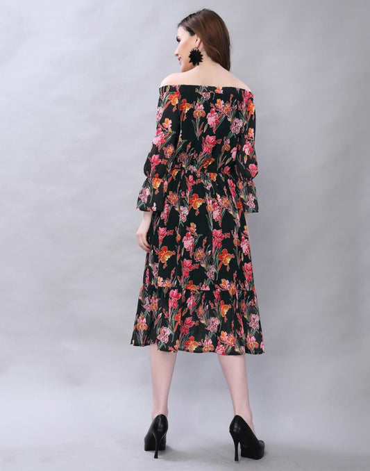 Contemporary Black Coloured Digital Printed Polyester Dress