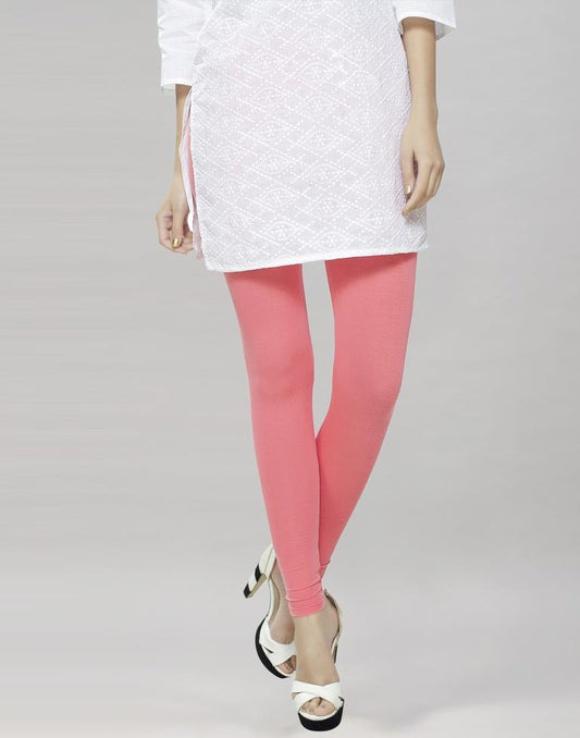 Classy Coral Pink Coloured Plain Cotton Leggings