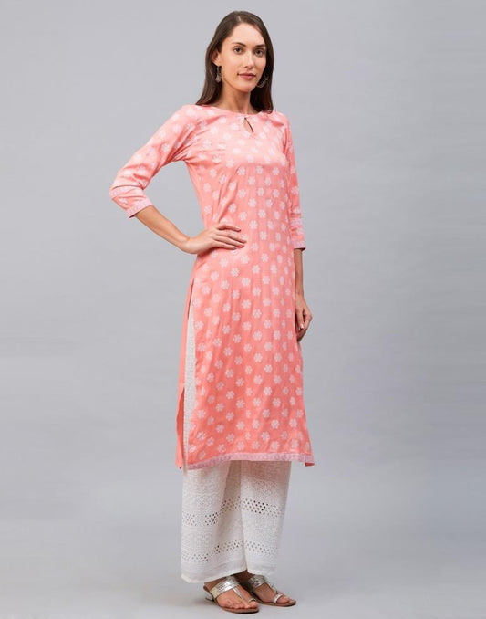 Contemporary Light Pink Coloured Khadi Printed Cotton Kurti