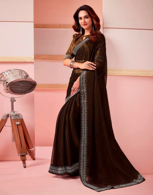 Coffee Brown Coloured Georgette Embroidered Partywear saree