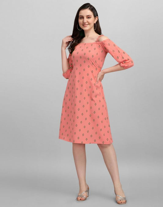 Coral Pink Coloured Crepe Printed Dress