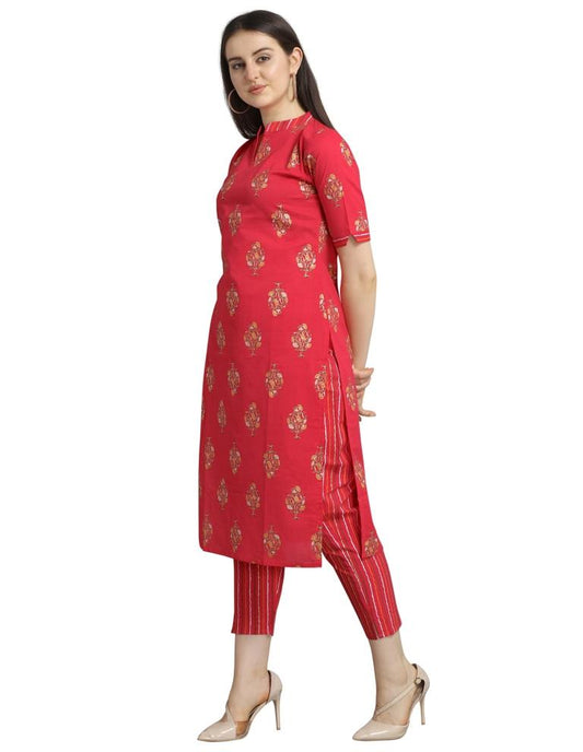 Coral Pink Foil Printed Cotton Kurti