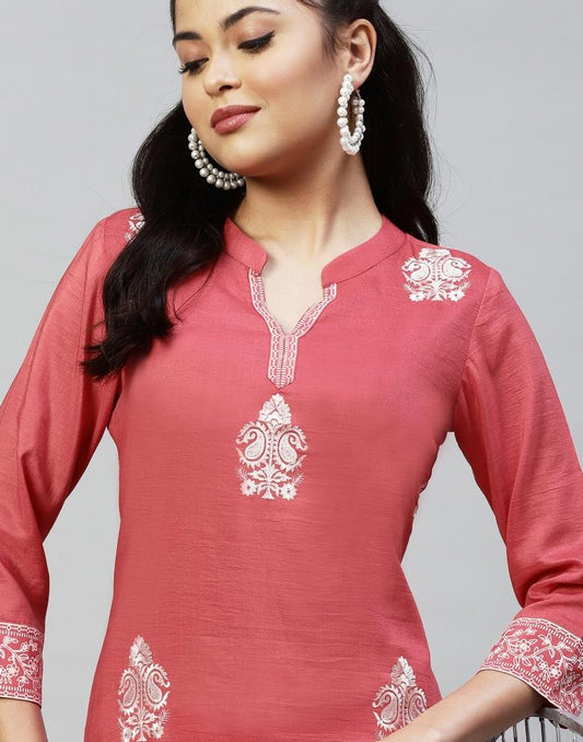 Coral Pink Embroidered Kurti