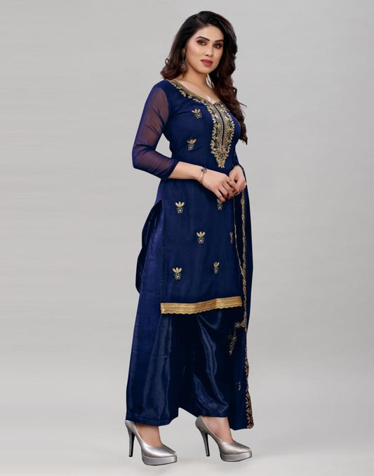 Creative Navy Blue Georgette Embroidered Unstitched Salwar Suit