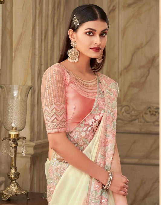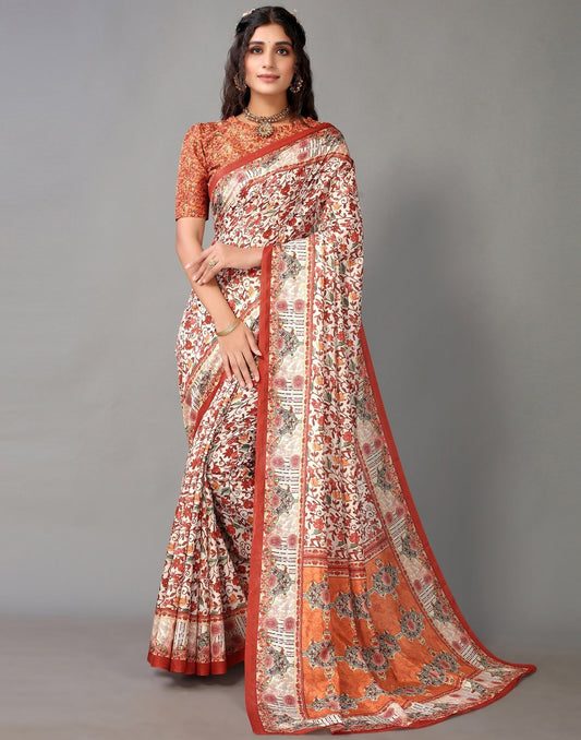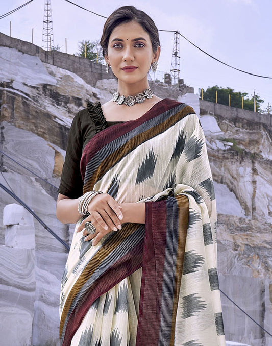 Dark Beige Coloured Lycra Foil Printed Laced Casual saree