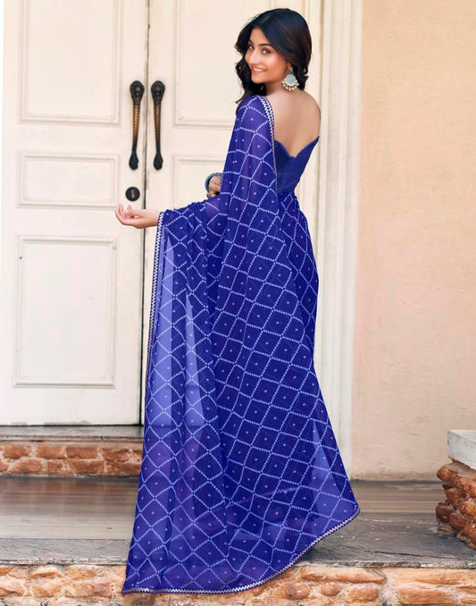 Dark Blue Georgette Printed Saree