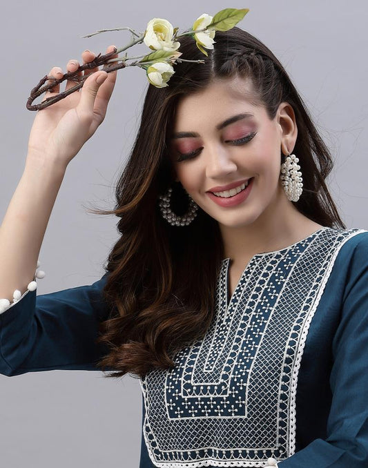 Dark Blue Embroidered Kurti