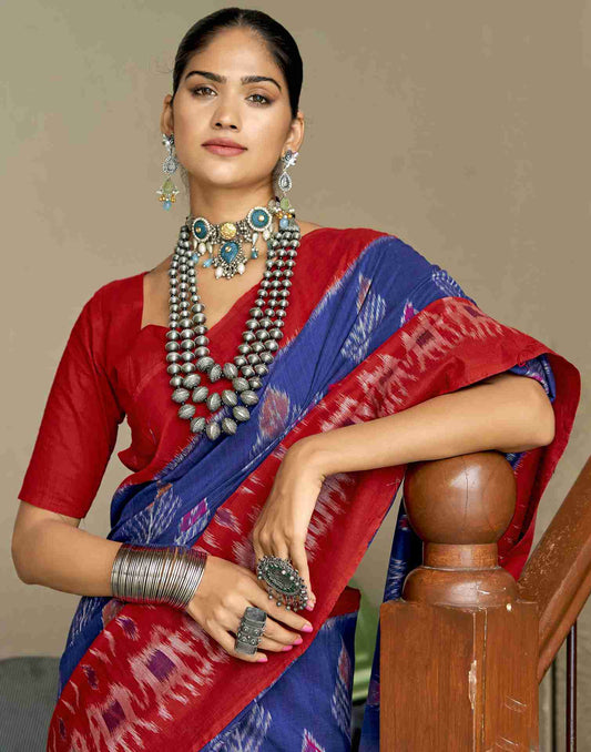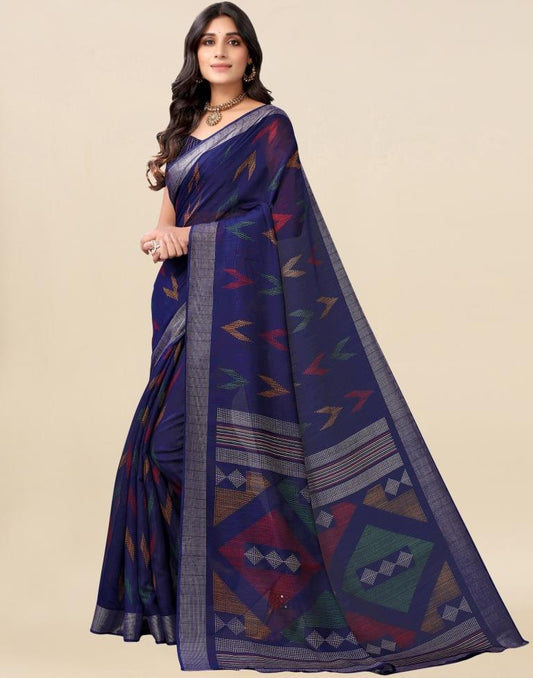 Dark Blue Cotton Geometric Printed Saree