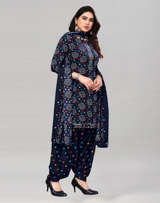 Dark Blue Printed Unstitched Salwar Suit