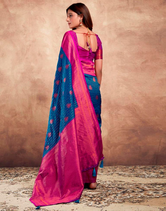 Dark Blue Silk Plain Saree