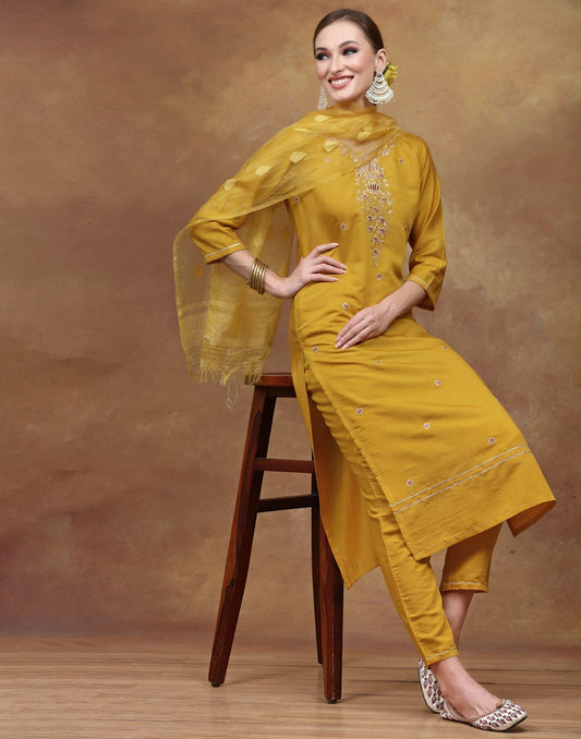Regular price Rs. 1,199.00Regular priceUnit price / perRs. 0.00Sale price Rs. 1,199.00Dark Gold Kurti With Pant And Dupatta