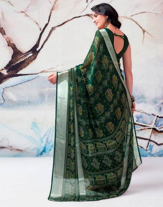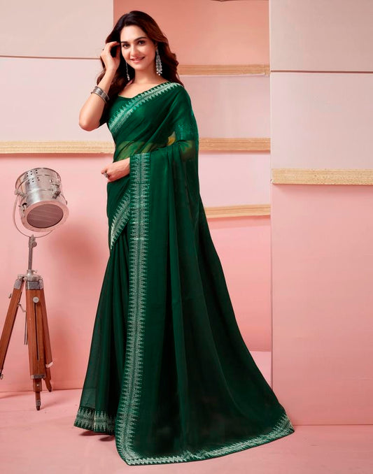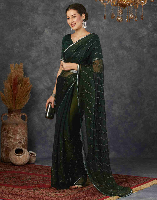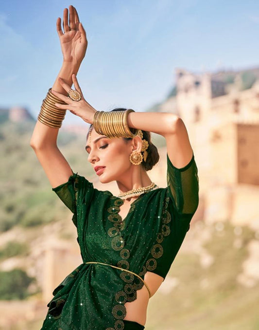 Dark Green Coloured Lycra Jacquard Partywear saree
