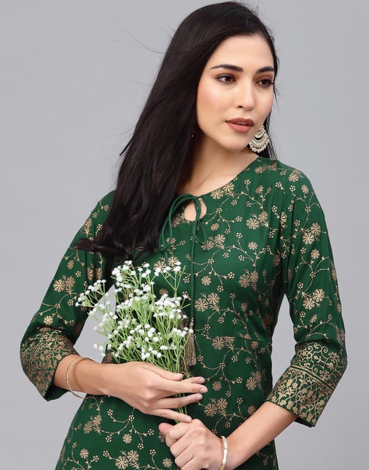 Regular price Rs. 589.00Regular priceUnit price / perRs. 0.00Sale price Rs. 589.00Dark Green Foil Printed A-Line Kurti