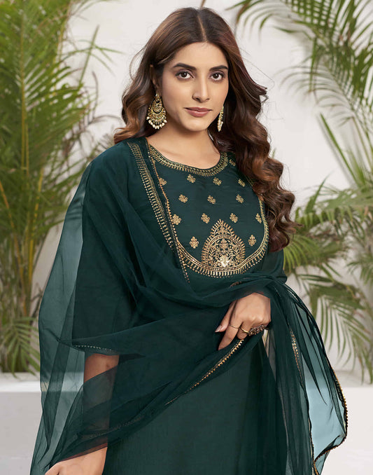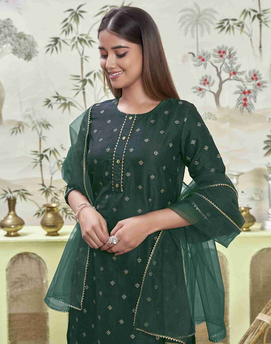 Dark Green Sequence Silk Straight Kurta With Pant And Dupatta