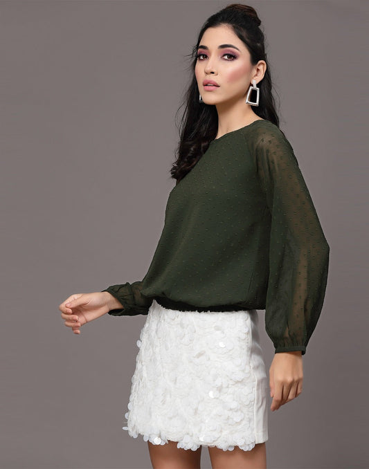 Regular price Rs. 489.00Regular priceUnit price / perRs. 0.00Sale price Rs. 489.00Dark Green Self Design Mock Top