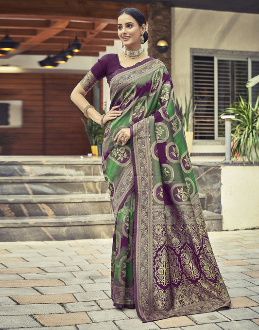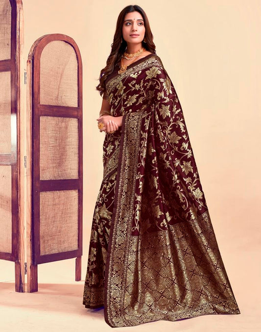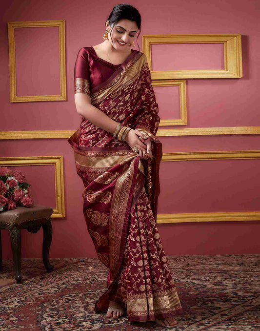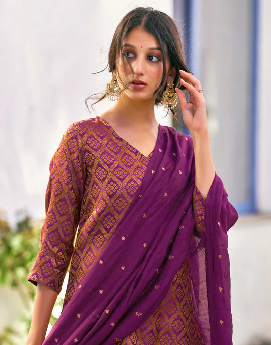 Dark Magenta Woven Brocade Straight Kurta With Pant And Dupatta