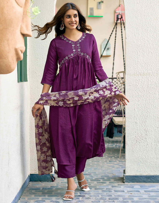 Regular price Rs. 959.00Regular priceUnit price / perRs. 0.00Sale price Rs. 959.00Dark Lavender Embroidery Cotton Straight Kurta With Pant And Dupatta