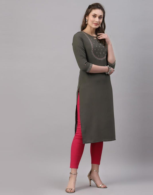 Dark Olive Green Embroidered Kurti