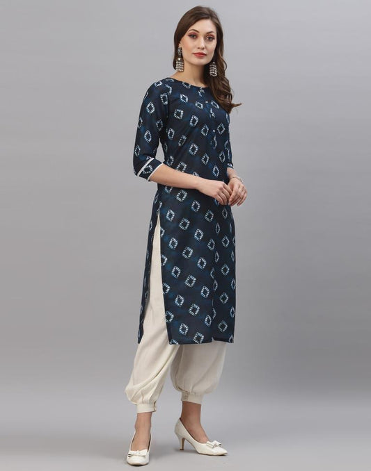 Dark Navy Printed Kurti