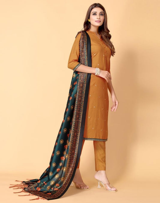 Dark Mustared Kurti With Pant And Dupatta