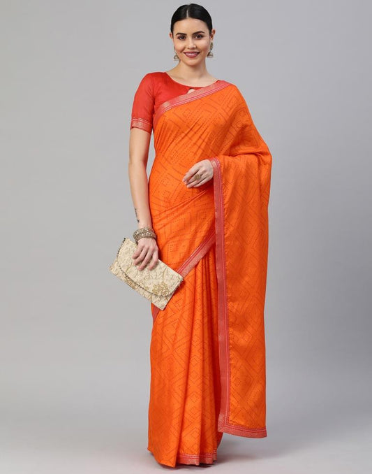 Dark Orange Bandhani Silk Saree