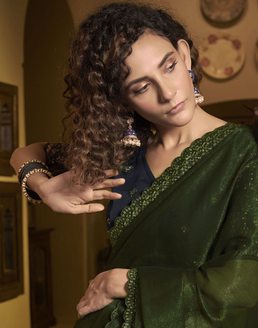 Dark Olive Green Organza Saree