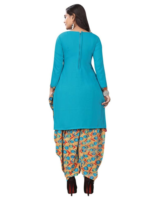 Dashing Sky Blue Printed Unstitched Salwar Suit