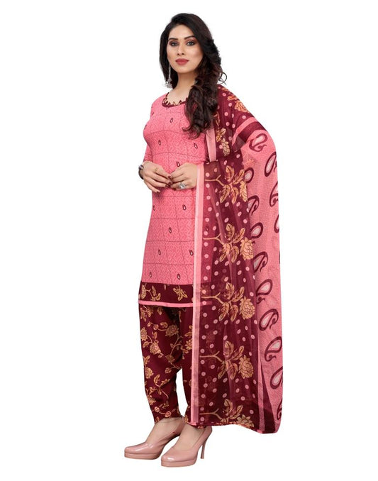 Dashing Rose Pink Printed Unstitched Salwar Suit