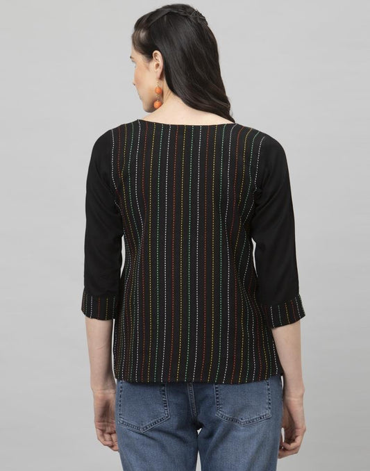 Regular price Rs. 459.00Regular priceUnit price / perRs. 0.00Sale price Rs. 459.00Dashing Black Coloured Woven Striped Cotton Tops