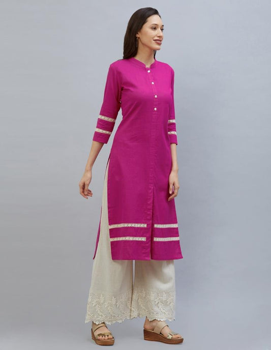 Dashing Dark Pink Coloured Laced Cotton Kurti