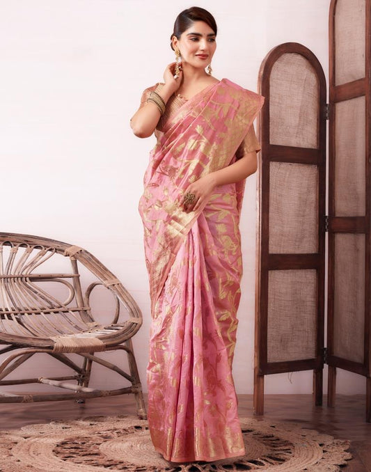 Dusty Pink Organza Woven Saree
