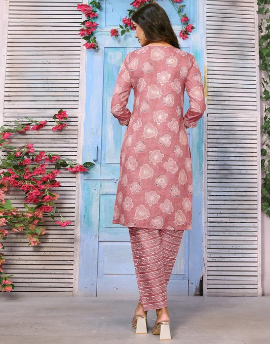 Dusty Pink Printed Kurta With Pant