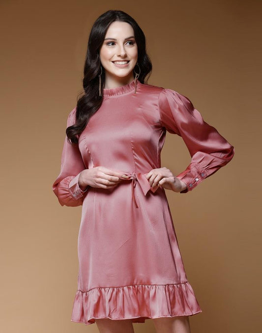 Dusty Pink Satin Plain A-Line Dress
