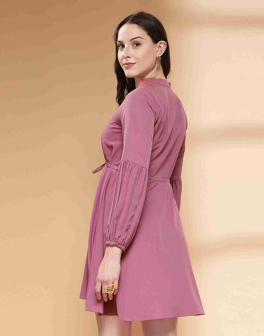 Dusty Pink Polyester Plain Flared Dress
