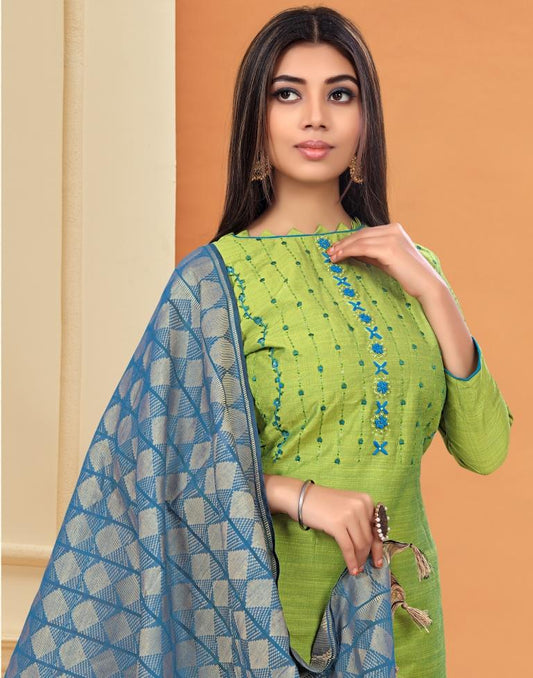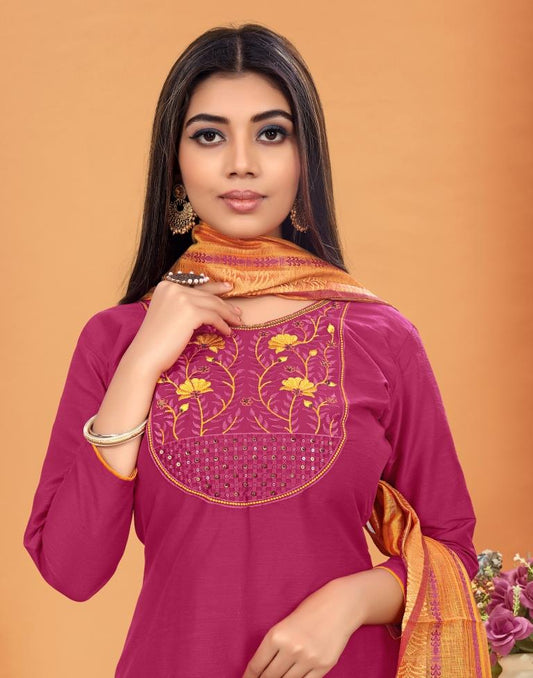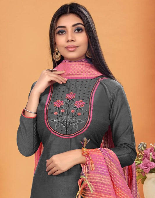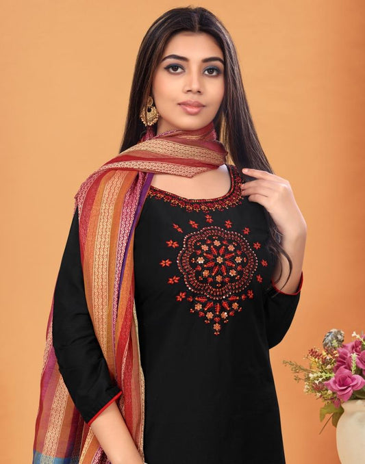 Embroidered Cotton Unstitched Salwar Suit Material