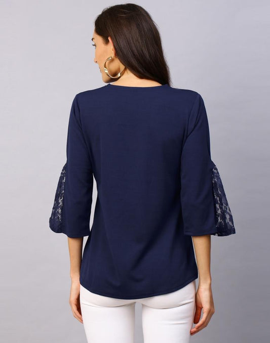 Elegant Navy Blue Coloured Russell Net Lycra Tops